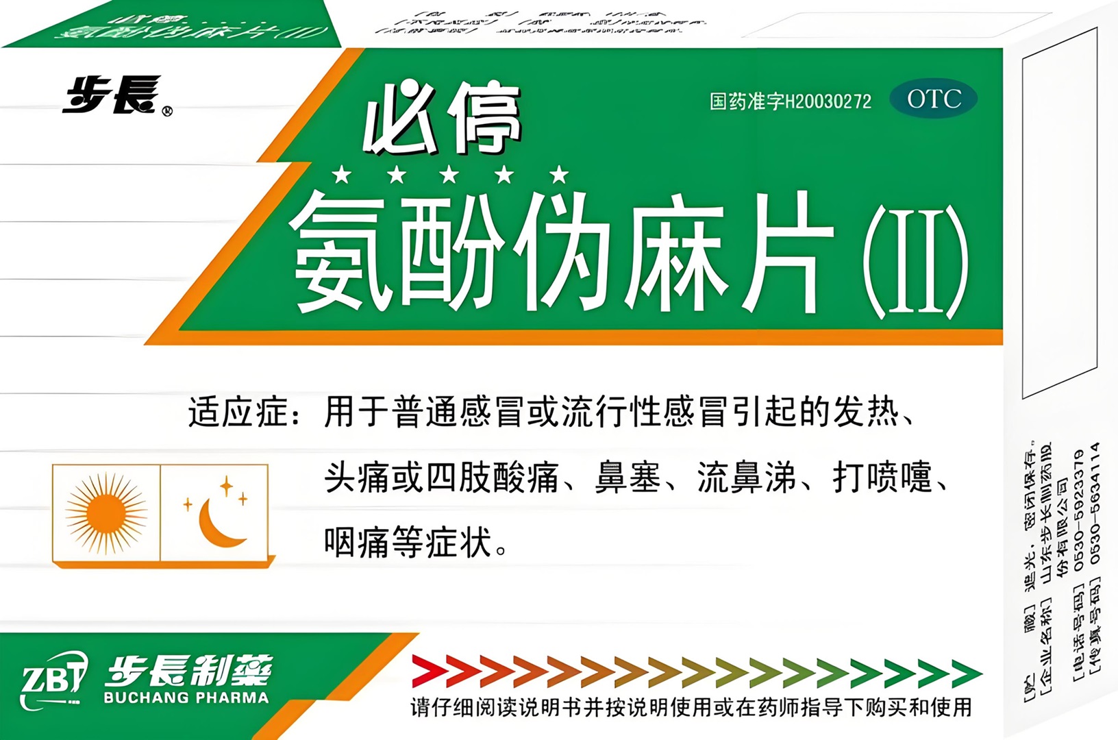 产品名称:氨酚伪麻片(Ⅱ) @n@n包装规格:30mg*12S@n@n批准文号:国药准字H20030272@n@n生产厂家:山东步长制药股份有限公司@n@n适应症:用于普通感冒或流行性感冒引起的发热、头痛或四肢酸痛、鼻塞、流鼻涕、打喷嚏咽痛等症状